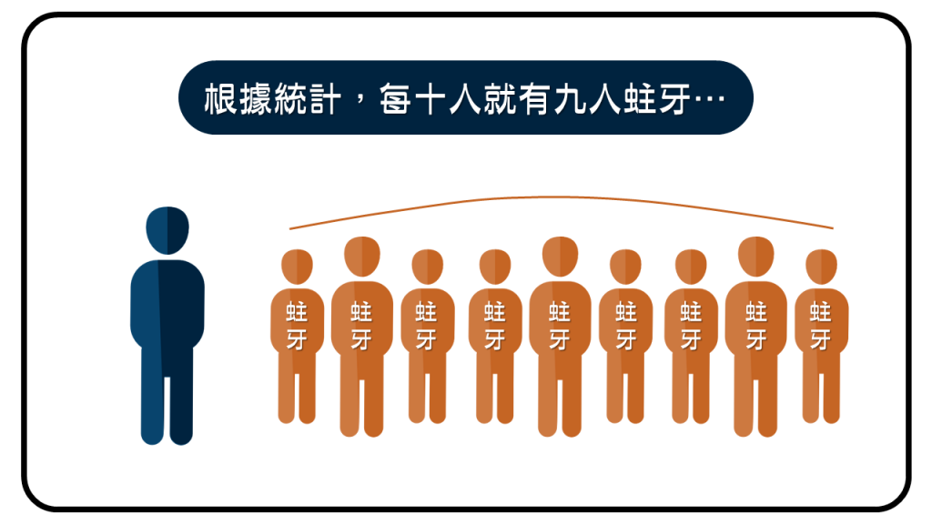 根據統計,在台灣每十個人竟然高達就有九個人蛀牙,蛀牙幾乎可說是國民疾病。