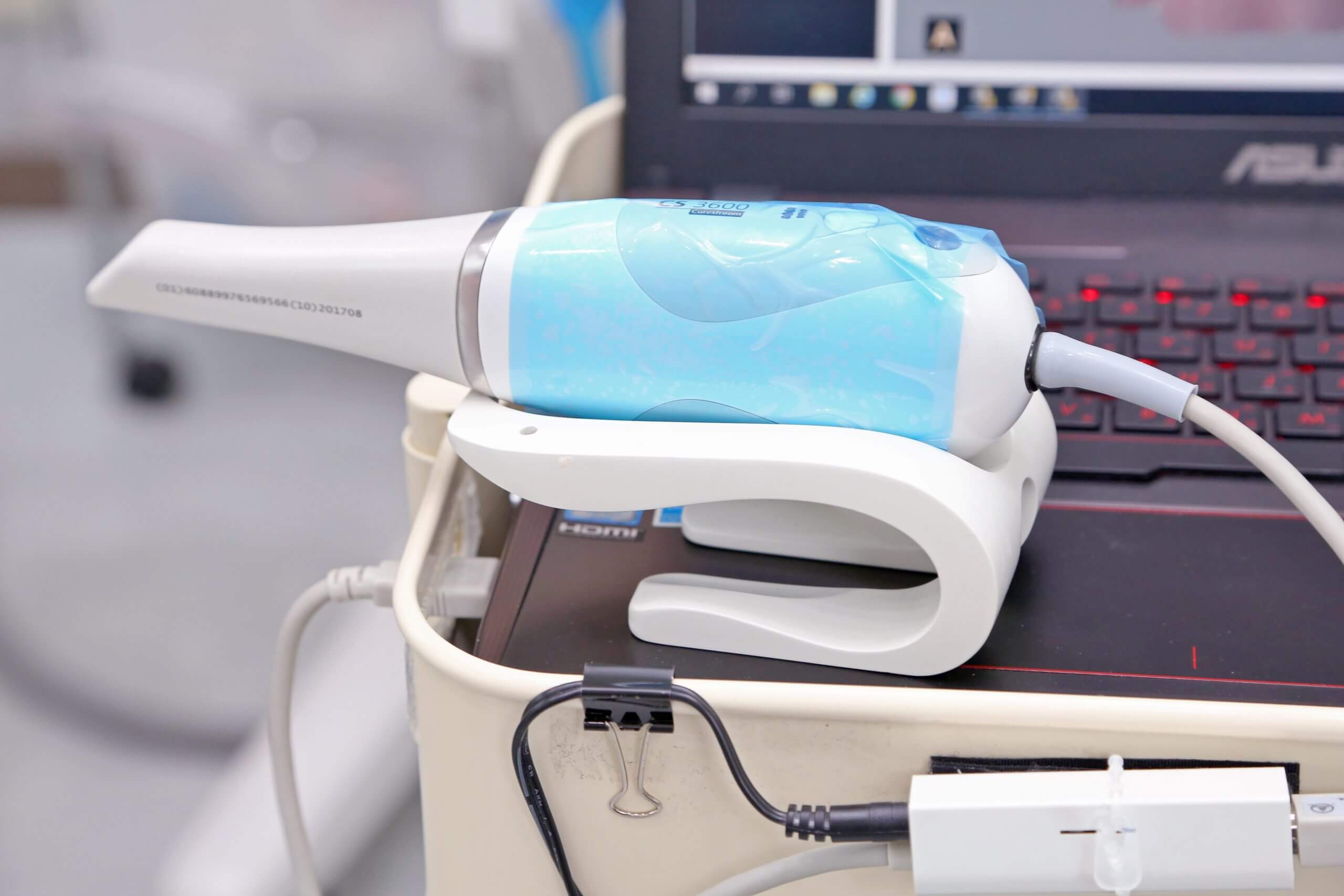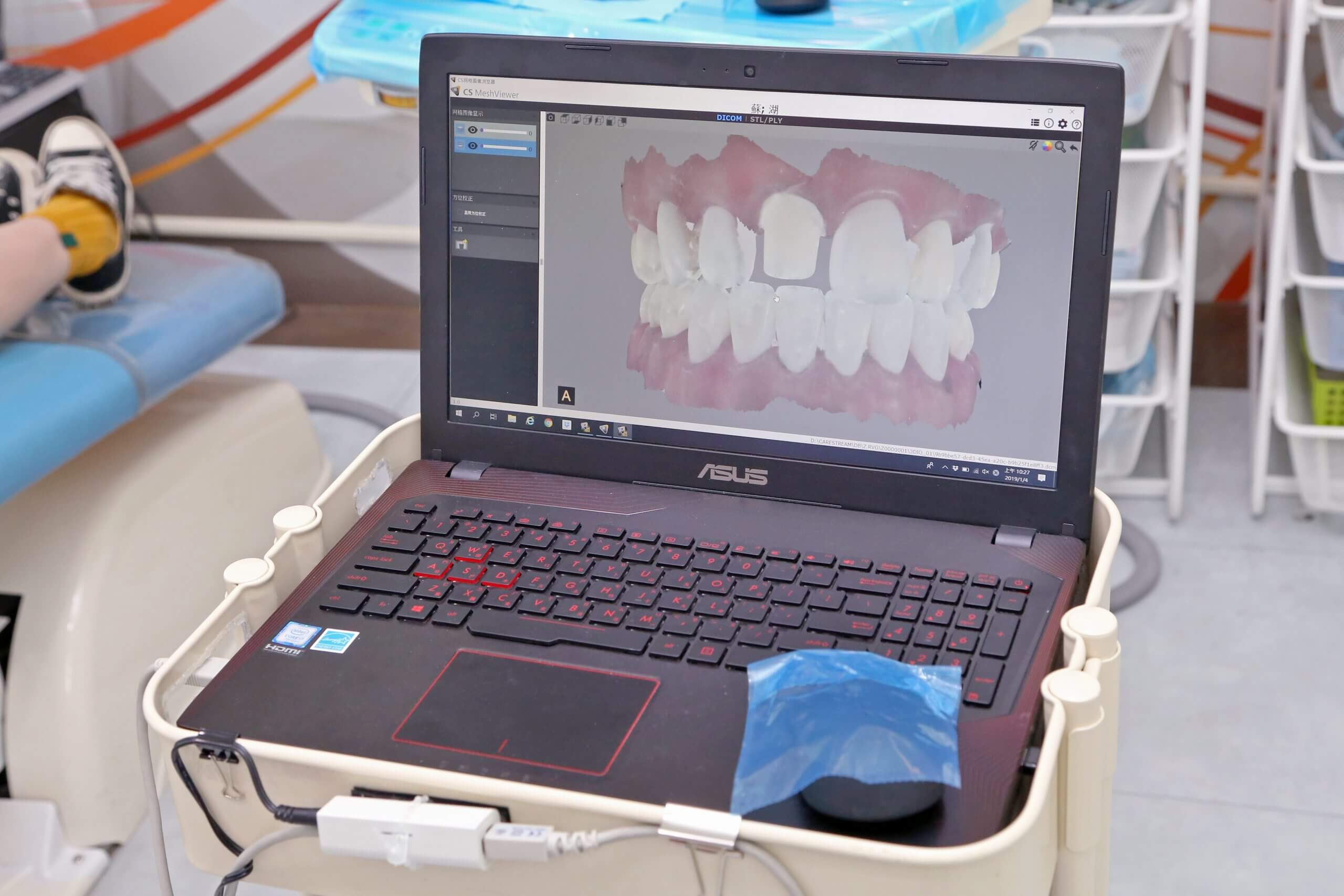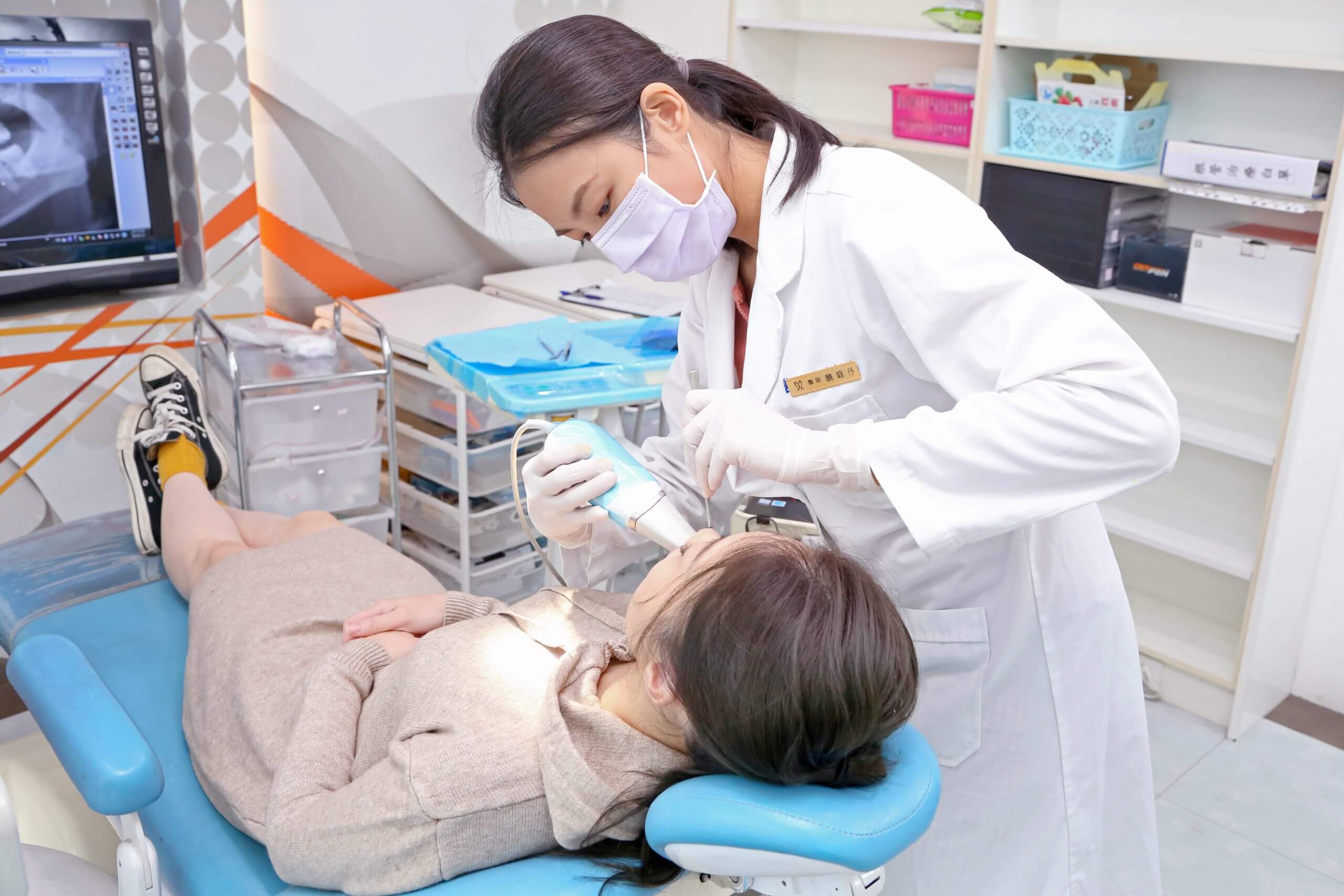 饒庭伃醫師為患者使用3D口腔掃描儀的真實畫面