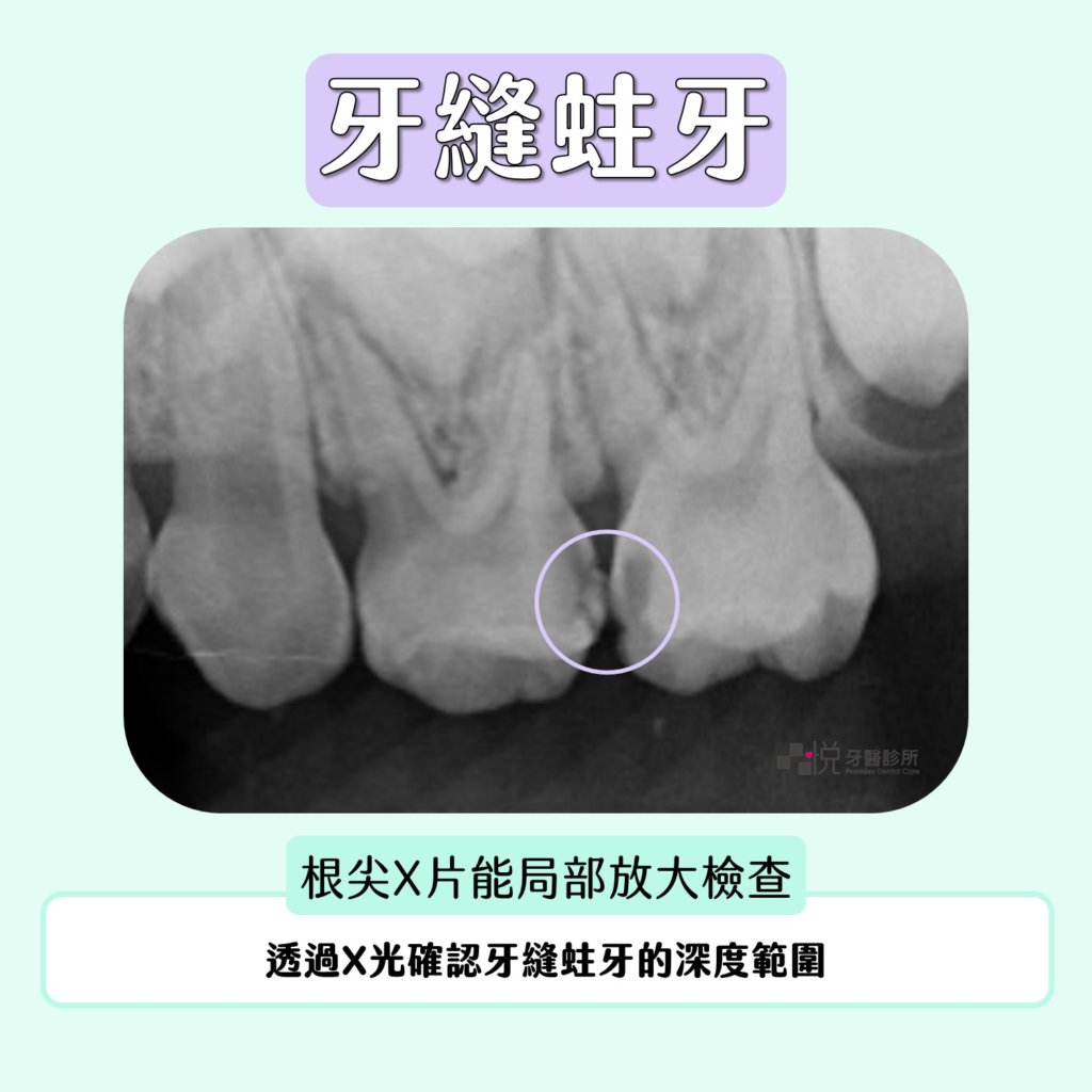 當醫師懷疑有肉眼所看不見的「牙縫蛀牙」,就會安排拍攝根尖X光片的,能更局部放大、檢查牙縫蛀牙的情況。