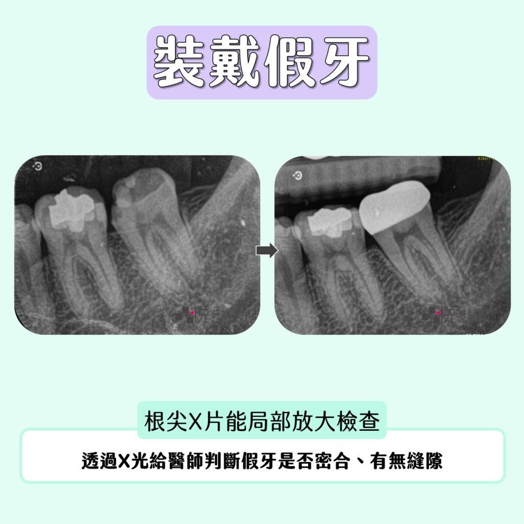 透過X光給醫師判斷假牙是否密合、有無縫隙。
