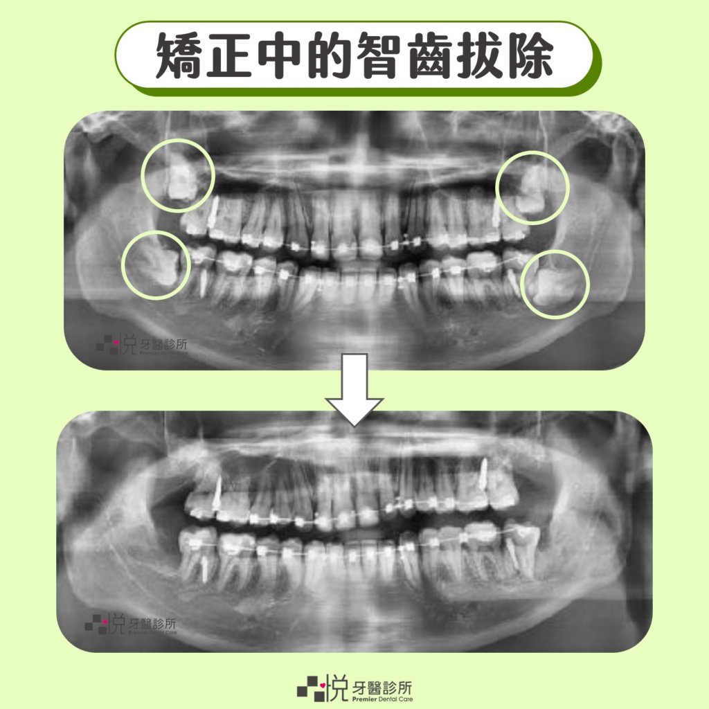 牙齒矯正治療中的患者,由於空間不足,在矯正醫師的要求下,需將四顆智齒拔除。