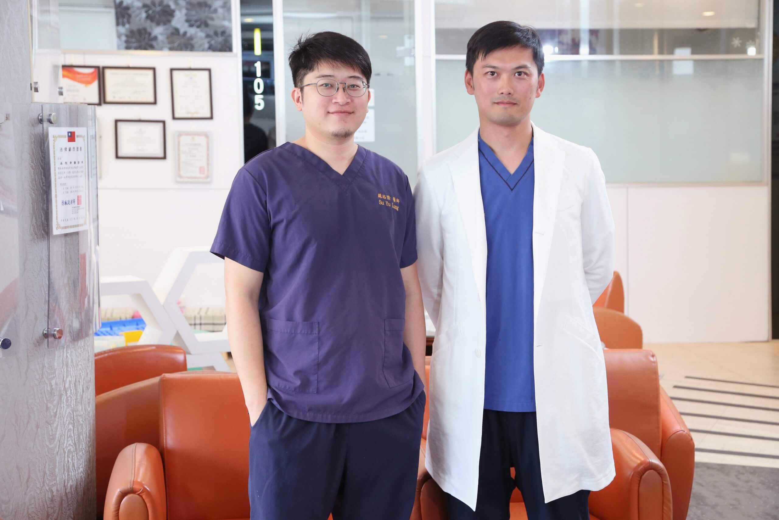 牙周專科的張志嘉醫師主要負責牙周狀況的確認與治療以及植牙手術、假牙專科的蘇裕隆醫師則負責假牙製作。