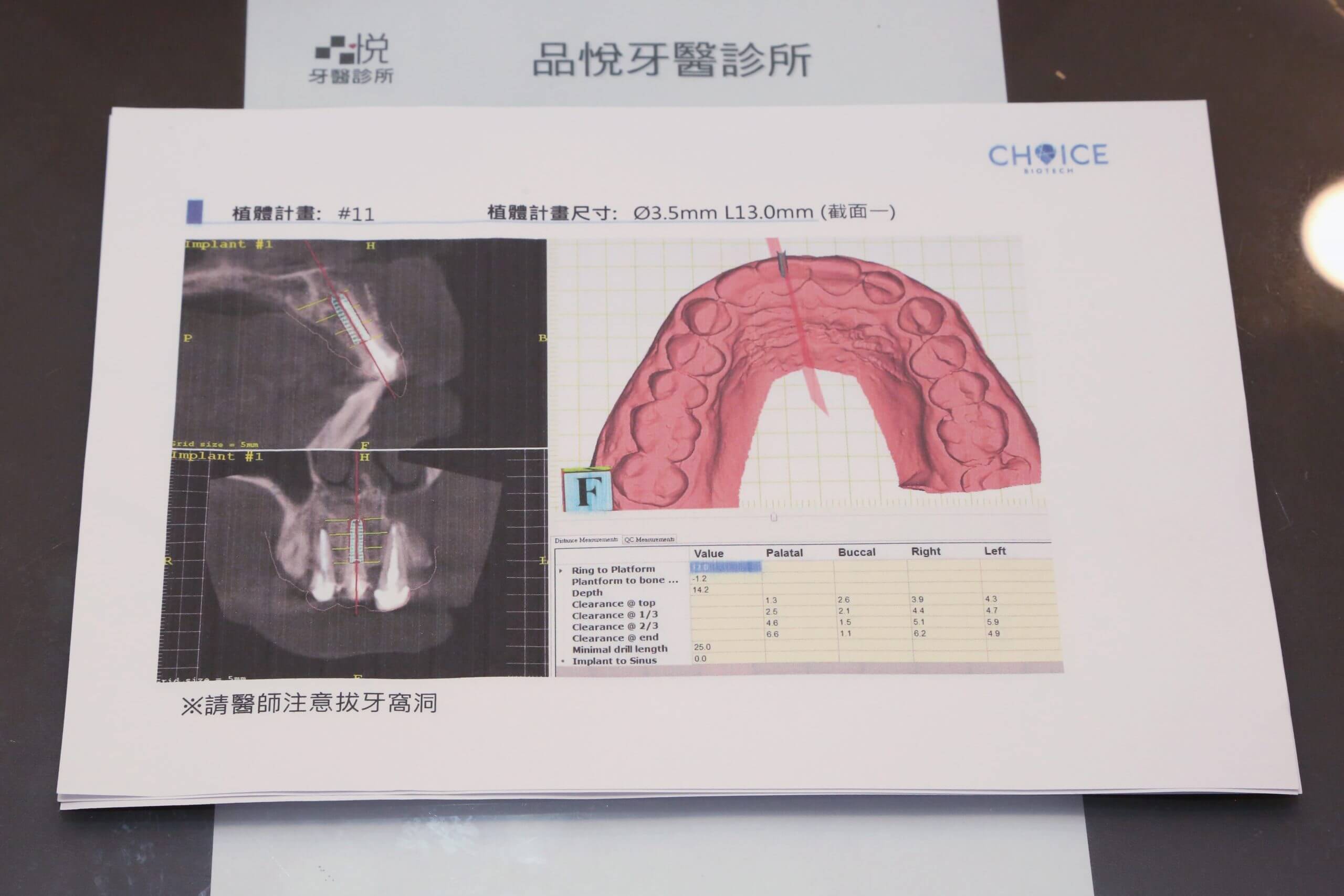 一開始醫師會先評估病患的牙齒狀況,進行一部分植牙前的治療,接著提供病患一份專屬的治療計畫書,以確認植牙治療的細節,其中包含了詳細的治療項目,預估的時間及目標、費用等等。