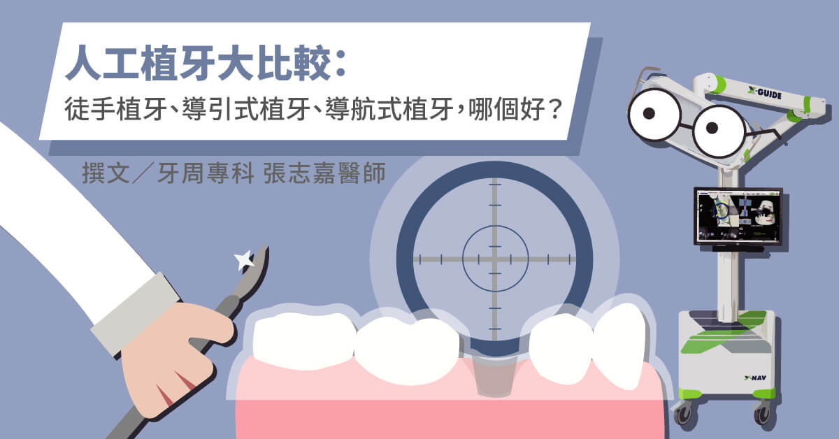 隨著科技與時代的演進,人工植牙的技術不斷的進步,從過去傳統的徒手植牙、到近代的導引式植牙,以及更加數位化的導航式植牙,到底有什麼不同?這次就讓我們花幾分鐘的時間一起了解這些人工植牙術式的比較吧!