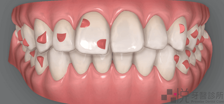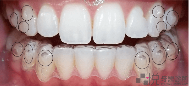 隱形矯正牙齒上的定位點