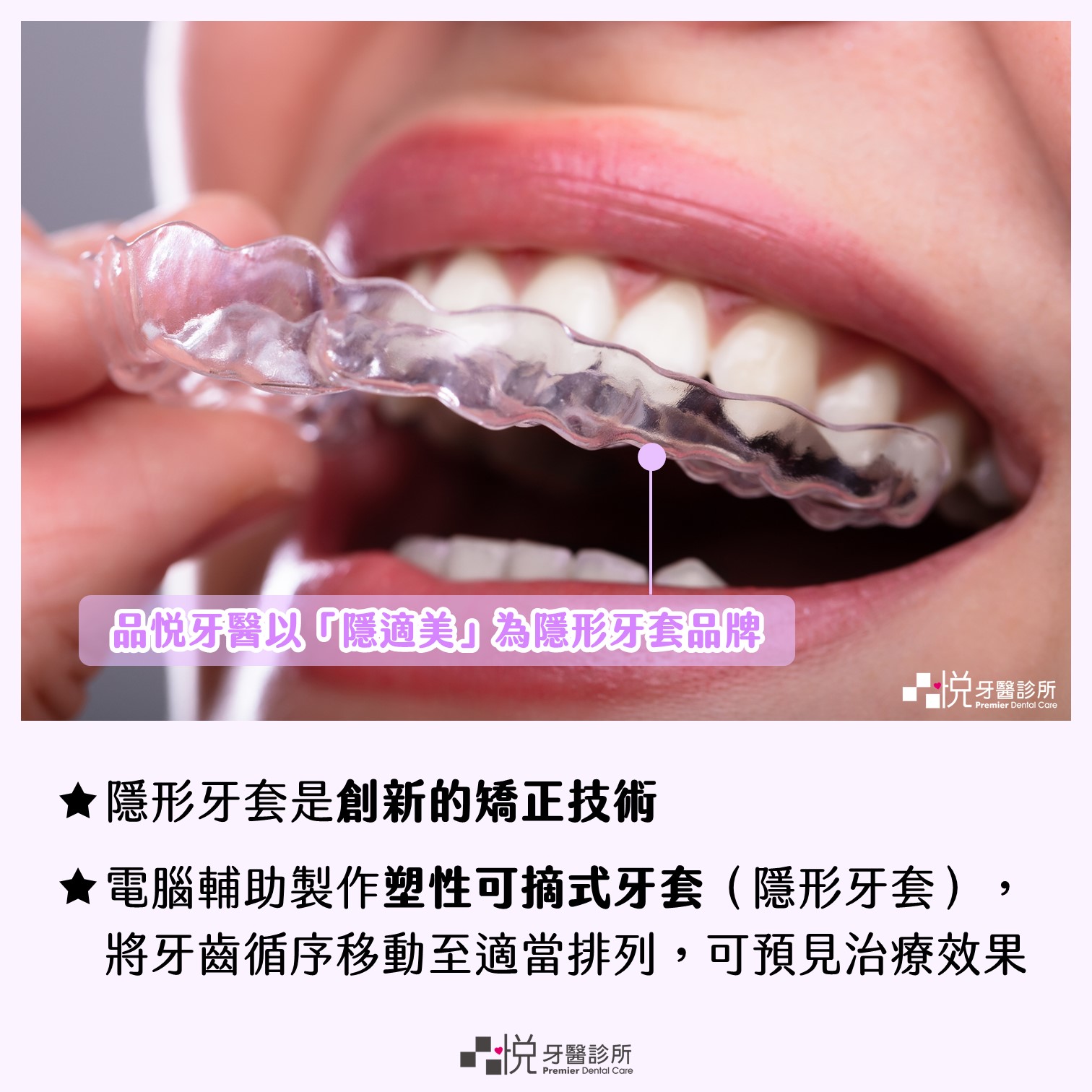 目前品悅牙醫是以「隱適美」此隱形矯正品牌