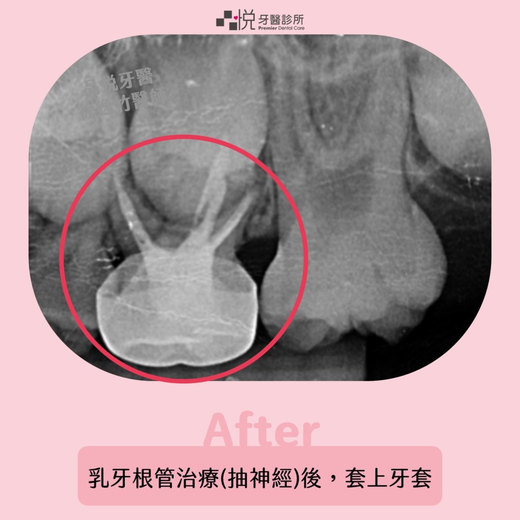 乳牙牙根底下就是恆牙牙胚,不積極做細菌控制(根管治療)容易細菌往下傳導到恆牙,影響恆牙的發育。