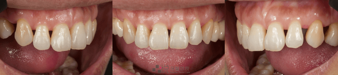 並藉由特殊的成型片和技巧,讓美學樹脂可以在牙縫區域跟牙齒有非常完美的黏著和形態。但技術敏感度高,不是每位醫師都可以妥善處理這樣的狀況。