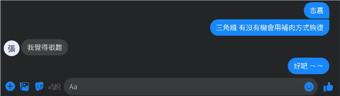 黑三角縫就只是人生中的一個小小小波折而已,他不是疾病的狀態,所以也打不倒你,只是偶爾會讓你覺得困擾,如此而已。