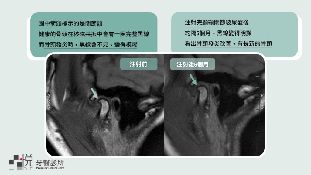 儘管關節注射玻尿酸是 1960 年代開始使用,到 1979 年才開始正式應用在顳顎關節,但眾多的研究都能證實玻尿酸在關節的治療上是⼀個比較不具有侵略性,但有幫助的治療方式。