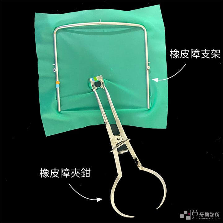而水分對於樹脂黏著劑的硬化及聚合又有特別大的影響,所以利用橡皮障去隔離水氣與水分,讓黏著劑達到最佳的效果,就是黏著陶瓷貼片時很重要的步驟。