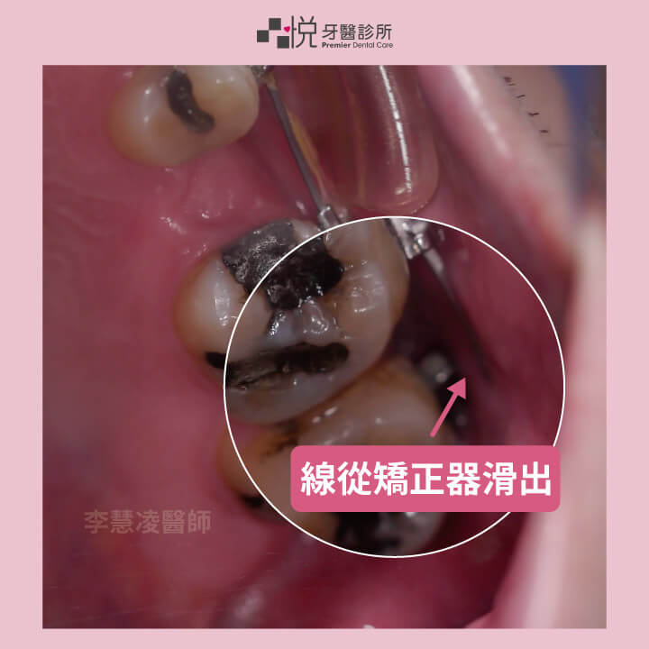 在矯正過程中牙齒會漸漸地排列整齊,拔牙的空間也會漸漸關閉,這時候可能會有矯正線從最後一顆牙齒上的矯正器稍微凸出去。如果您有因為以上狀況導致不舒服,也可以使用軟蠟將凸出來的線尾包起來,然後打電話到診所幫您做後續處理。