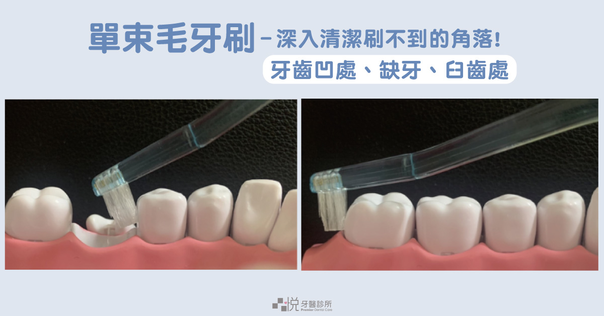 單束毛牙刷可以針對凹陷處及缺牙的鄰接牙做加強清潔。