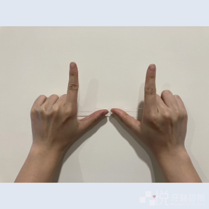 清潔後牙時使用兩隻食指,中間留大1公分的寬度。
