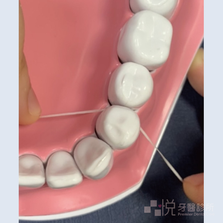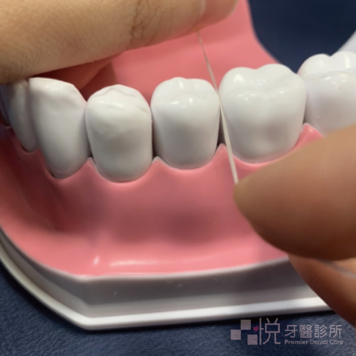 牙線接觸牙齒方式說明