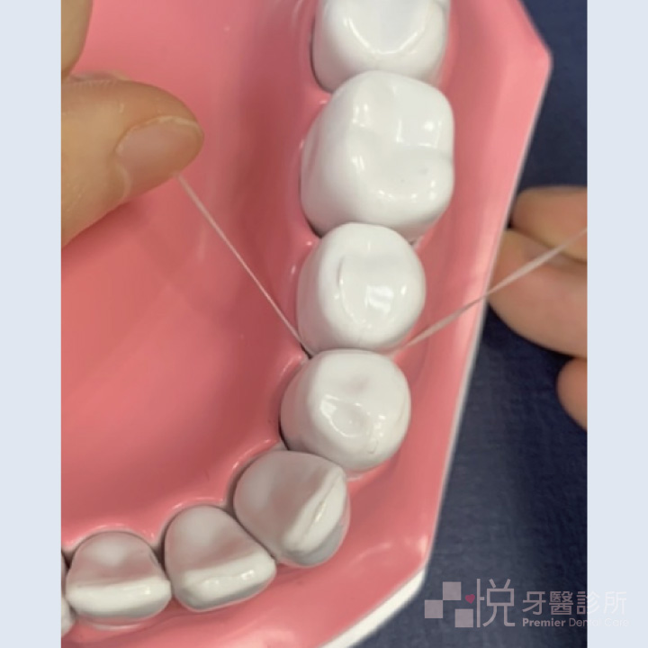 小要點:牙線不單單是要剔除食物,也是要把牙縫表面的黏黏的牙菌斑去除,所以每顆都要用,不是有卡食物才要用喔。
