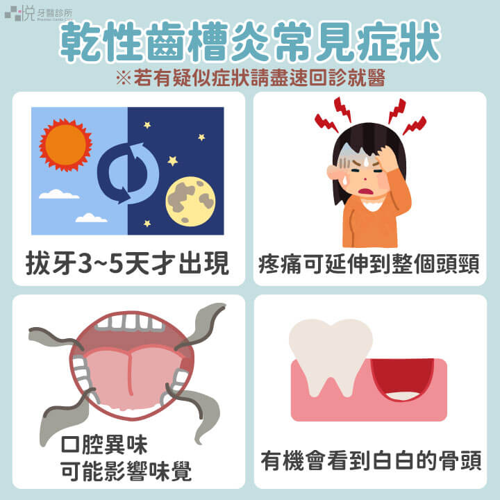 - 拔牙完3~5天後產生,不是一拔牙就出現