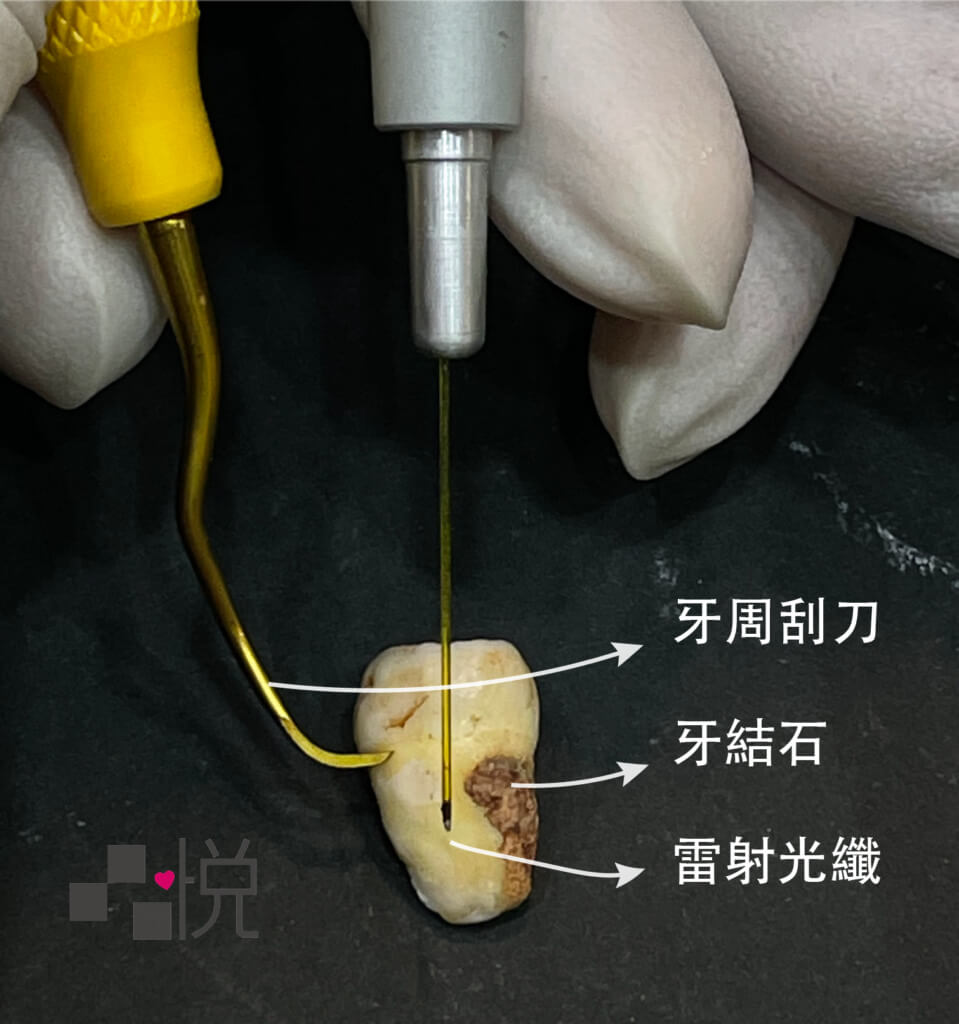 因傳統牙周治療器械的限制,再深處囊袋的牙根表面器械無法伸入,雷射因探頭較細,可以清到傳統治療無法治療的區域。[4]