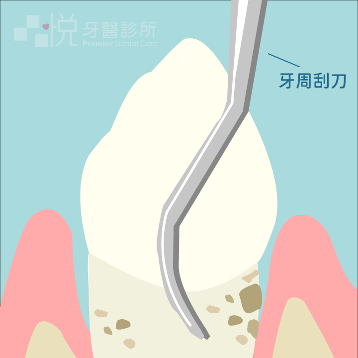 - 使用非手術型方式使用牙周刮刀將牙根表面之牙結石清除
