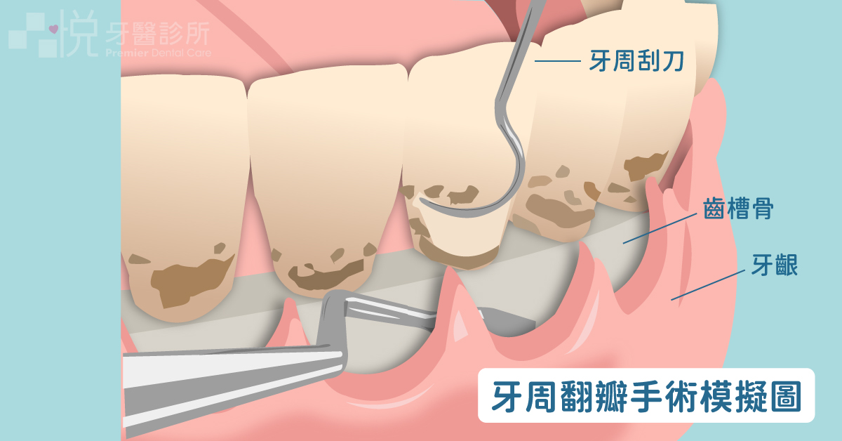 此時單純使用牙周刮刀會進不到牙周囊袋最深處,因此為了達到清除牙根表面的牙結石使用雷射或牙周翻瓣手術是可能考慮的治療方法,當然牙周發炎已經很嚴重時拔牙也會是考量事項。