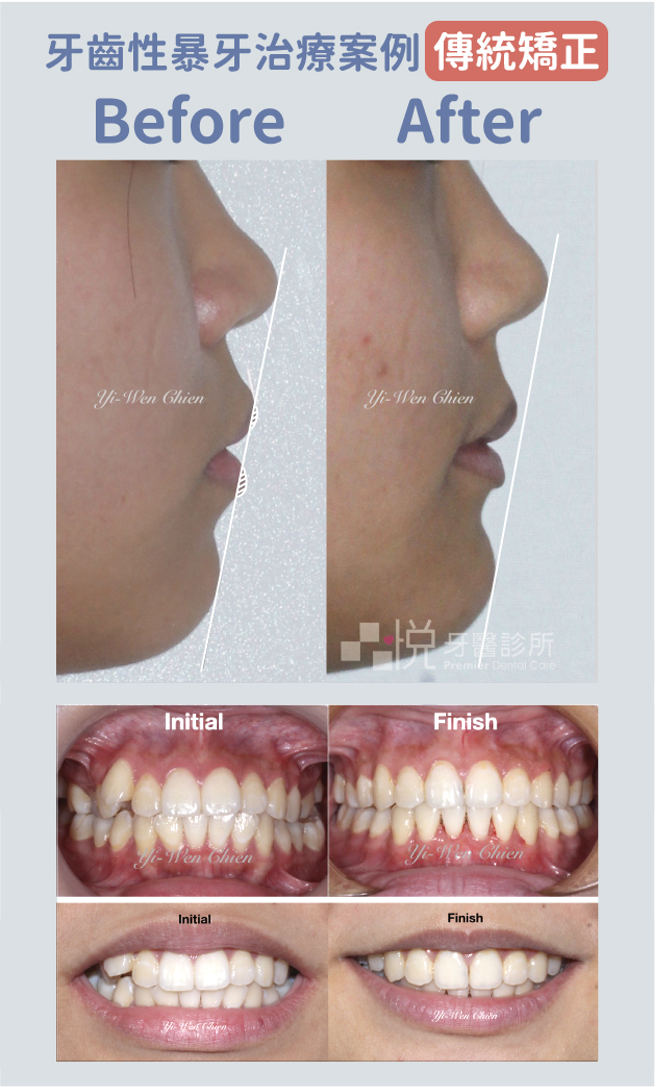 矯正諮詢中常常遇到希望可以藉由牙齒矯正,來改善暴牙外觀的病人。若為單純牙齒性暴牙,或是輕微的骨骼性暴牙,是有機會可以透過適當的矯正治療來改善嘴凸的外觀,美化下臉部的側面輪廓