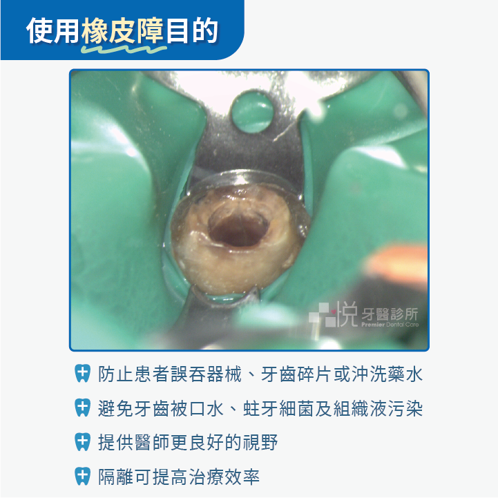 顯微根管治療的過程有個最重要的輔助工具就是-橡皮障(傳說中的小綠布)